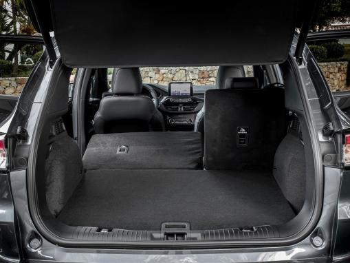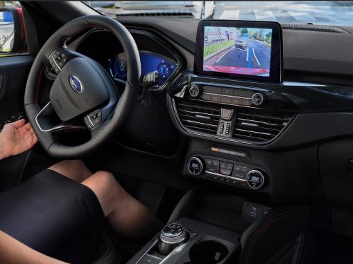 Der Ford Kuga Voll-Hybrid kombiniert den elektrifizierten Antriebsstrang serienmässig mit dem intelligenten Allradantrieb. Seine Steuerung misst, wie viel Grip die Reifen auf der Fahrbahn finden. Darauf abgestimmt verteilt das System das Drehmoment zwischen Vorder- und Hinterachse. Auf die Kraftstoffeffizienz wirken sich die bei Bedarf zusätzlich angetriebenen Räder kaum aus, zumal die Steuerung bei vorteilhaften Strassenverhältnissen die Kraft vollstaändig an die Vorderräder leitet.